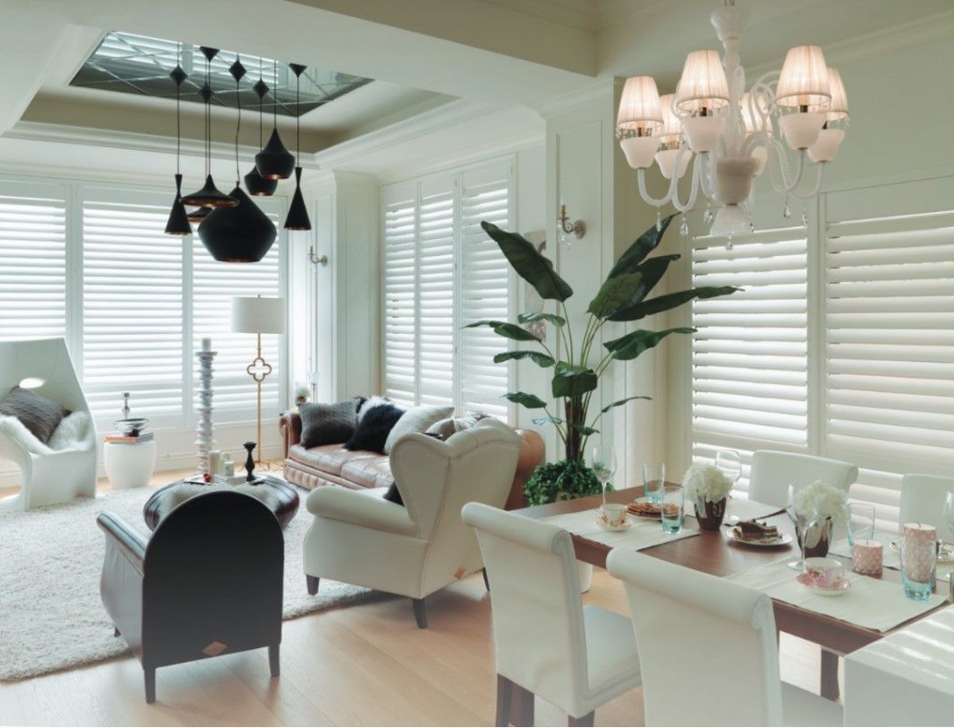 Opened louvers allow high light penetration, adjusting the louvers varies light penetration down to a full close. We offer a wide variety of styles, materials and colours to choose from. Our shutters are easy to clean, won't chip, peel or crack and never need painting. Experienced decorators will bring samples to your home and assist in your selection, measure, and quote.